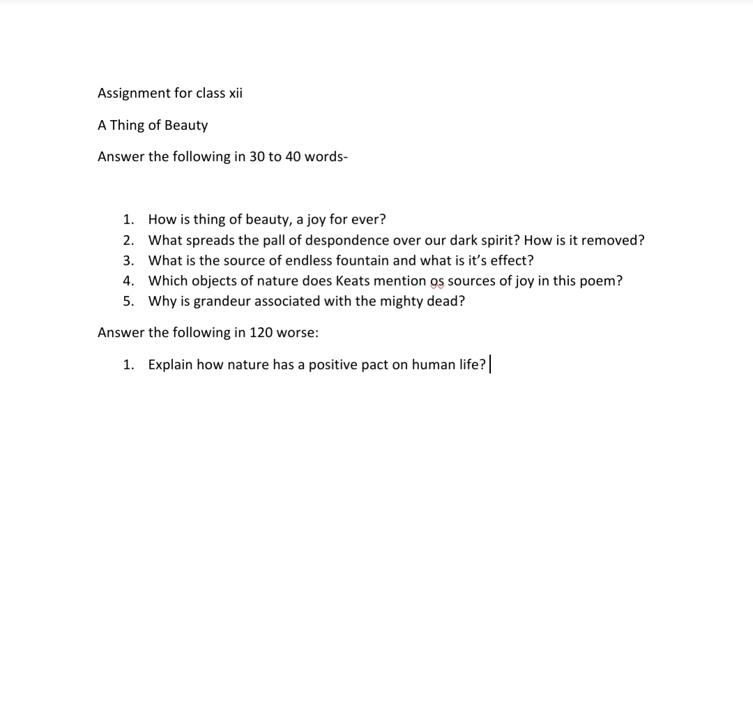 Assignment on poem "A Thing Of Beauty"
